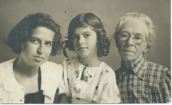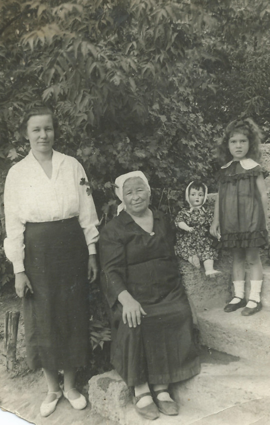 С сестрой Галей и бабушкой Елизаветой Филипповной. 1940 г.