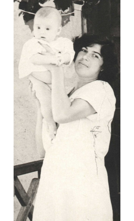 А потом сюда приехала мама и год с нами жила. Шобы я к ней привыкла…»