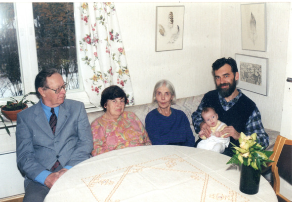 В гостях в Хювинкяя, в Финляндии. Сваты Уки и Айла Кемппи. С внуком Симеоном. 2003 г.