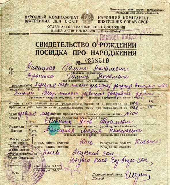 Мама родилась в Харькове 3 июля 1931 года. Отец Яков Абрамович Лившиц работал тогда сначала директором строительства Харьковского тракторного завода, а потом начальником Южной железной дороги.