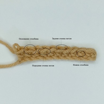 Основание столбика – элемент вязания крючком, образованный при вязании столбиков и состоящий из передней и задней стенки (фото 5)