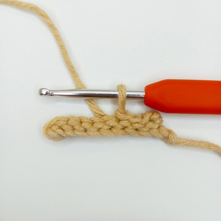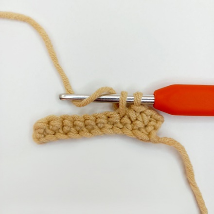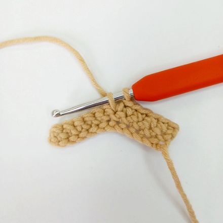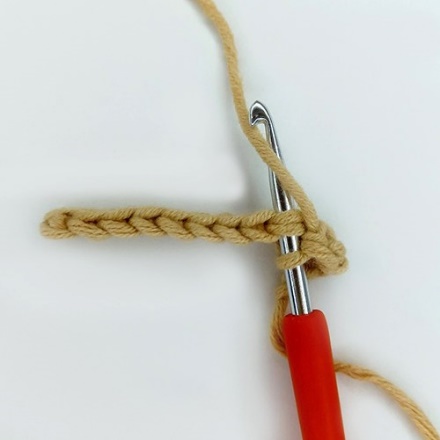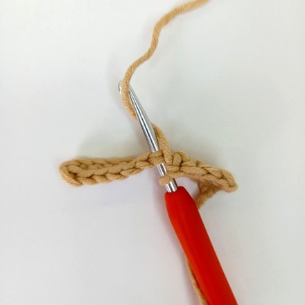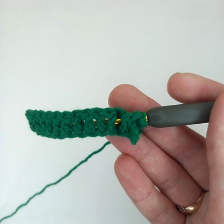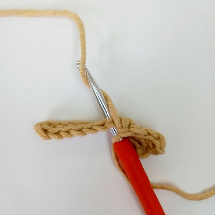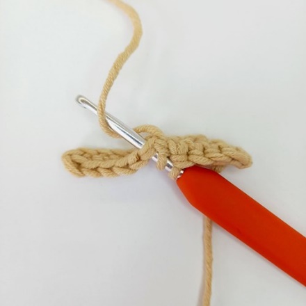 1. Крючок вводим под обе стенки одного основания столбика предыдущего ряда