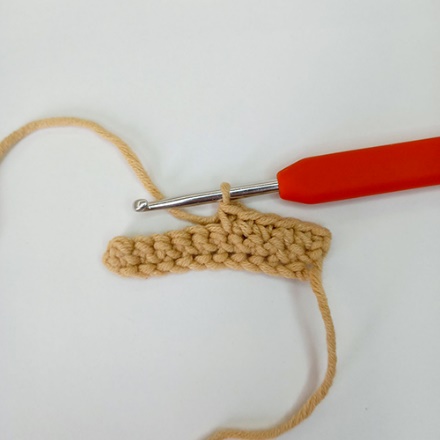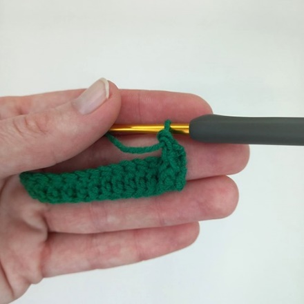 Соединительный столбик (СС) – самый низкий из столбиков, применяется в основном в качестве соединительной петли в конце ряда при вязании по кругу, а также для уплотнения края изделия (фото 10, здесь связана цепочка из ВП и ряд СС способом «Наборный ряд косичкой», о котором будет рассказано позднее)