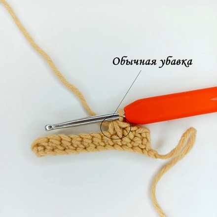 Так при обычном способе вязания убавок (на примере вязания СБН):