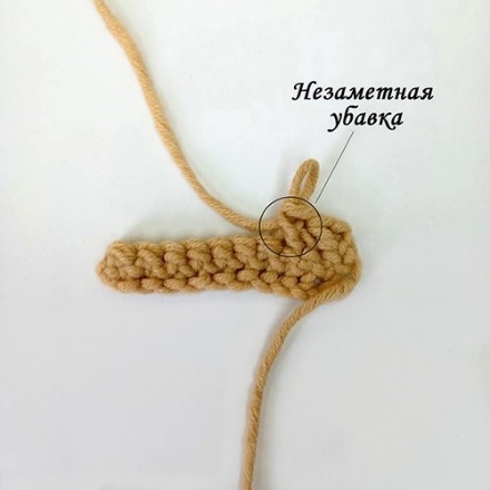 Незаметные убавки формируются следующим образом (на примере вязания СБН):