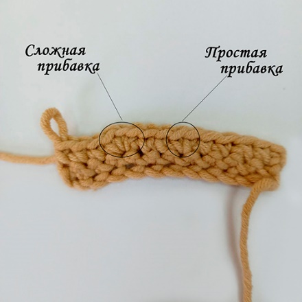 Сложные прибавки вяжутся точно также, как и простые только из одного основания провязываем не 2 столбика, а нужное количество (3, 4 и т. д.)
