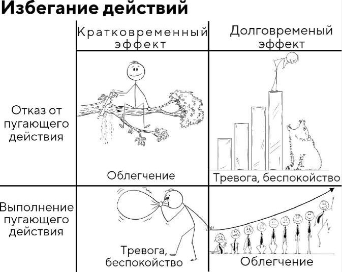 Проблема заключается только в том, что этот путь ведёт в никуда и создаёт лишь временную иллюзию сохранения комфорта. Ведь по большому счёту активный отказ от пугающих действий лишь подкрепляет желание избегать эти самые действия.