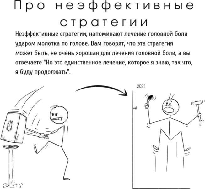 Цена вопроса: не получая вознаграждение (внутреннее и внешнее) за участие в пугающей активности, снижается мотивация делать это и в дальнейшем таким образом мы закрепляем страх, закрепляем неуверенность и фактически сводим на нет рост и развитие в данном направлении. Здесь хочется вспомнить знаменитую сентенцию: «Да, храбрецы не живут вечно, зато трусы не живут вовсе». Мы также можем проследить неэффективность стратегии избегания дискомфорта на примере замкнутого круга. Как правило, каждый человек крутится в своих заколдованных кругах, и чтобы понять это, достаточно спросить себя: есть ли что-то в моей жизни, что мне не нравится, но я никак не могу от этого избавиться? Замкнутый круг обычно говорит на инфантильном языке: «Не хочу так, но не умею по-другому», эта же история про грабли. Как перестать наступать на одни и те же грабли? Не торопитесь, подумайте пару секунд. Ответ содержится в вопросе! Снова прочитайте его, только уберите наречие «Как» и вопросительную форму. Замкнутый круг – это истории про: