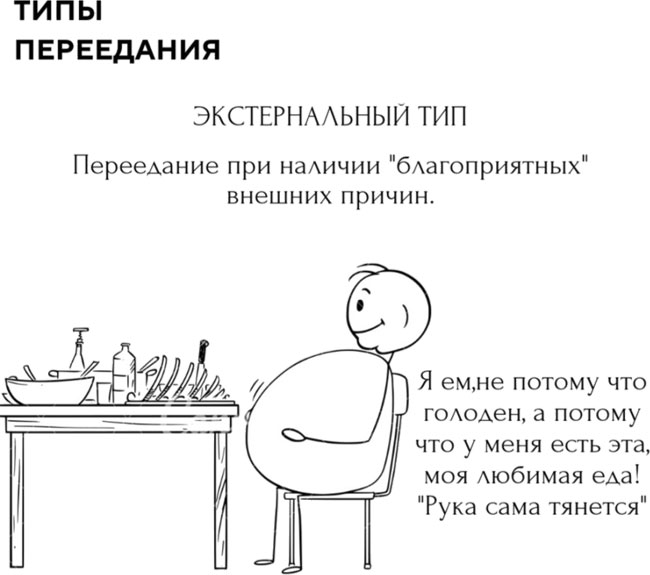 При данном типе переедание происходит при наличии благоприятных внешних причин.