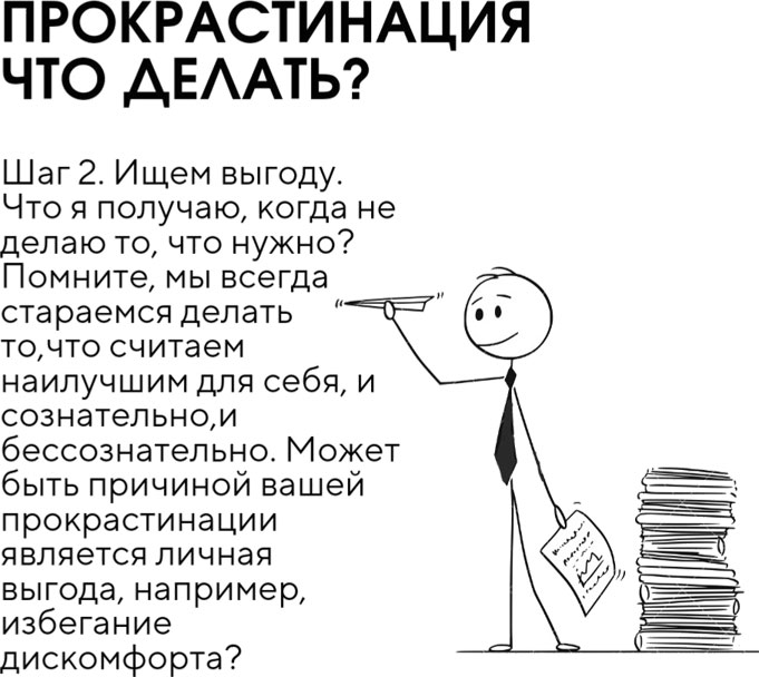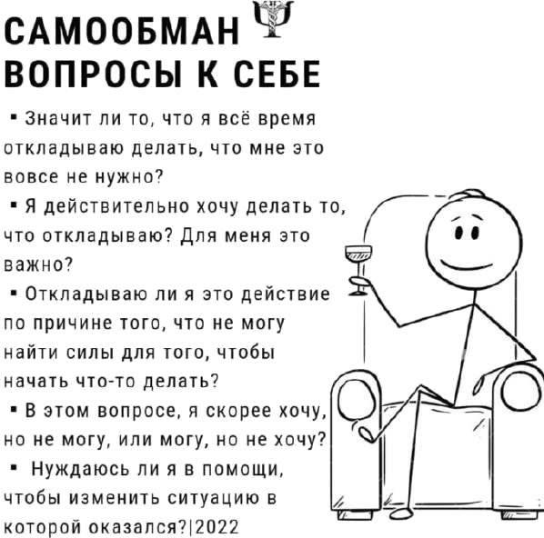 В таких случаях техники тайм-менеджмента и осознанности в помощь. Они также могут помочь понять, что ты, возможно, всё время откладываешь то, что вовсе не хочешь делать. Да, такое бывает, и довольно часто. Просто в таких ситуациях гнёт долженствования не даёт это увидеть. Но что делать с более глубинными и неочевидными мотивами к прокрастинации?