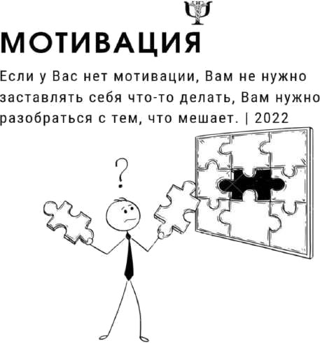 А теперь важно коснуться ещё одной, не менее важной темы, а именно «Мотивация». Почему мы рассматриваем такую тему, как «Мотивация», в главе про избегание? Довольно часто мотивация, а вернее, её отсутствие, так же, как и прокрастинация, являются проявлением избегающей модели поведения. И если мы можем понять, почему так происходит, то, соответственно, сможем и решить этот вопрос, т. е. помочь себе. Итак, что же такое мотивация? Слово «мотивация», вошло в обиход в нашей стране не так давно. Наши родители, бабушки и дедушки чаще использовали слова, обозначающие скорее отсутствие мотивации: лень, легкомыслие, тунеядство. Тем не менее сейчас, используя термин «мотивация», мы, как правило, подразумеваем внутренние импульсы и чувства человека, побуждающие его к выполнению тех или иных действий. Определенно, без этой движущей силы мир замер бы.