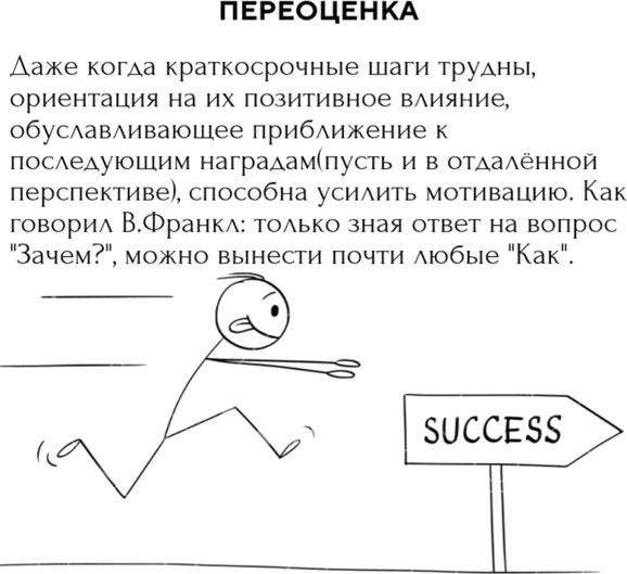 Мотивация держится на логике (понимании, зачем что-то нужно и почему), интересе (эмоции от процесса) и воле (силе, позволяющей не останавливаться). И если иногда нам кажется, что мотивации нет из-за отсутствия желания, спросите себя, не бежите ли вы от дискомфорта, прикрываясь отсутствием желания? Ведь довольно часто бывает и так. Вообще, говоря про мотивацию важно подчеркнуть еще один интересный момент. Психологи выделяют два типа мотивации: «на успех», «на избегание неудачи». В первом случае человека толкает вперёд положительная перспектива развития событий, например: я готовлюсь к экзамену, чтобы стать классным специалистом. Во втором варианте действия запрограммированы на избегание неудачи. Возьмём тот же пример с экзаменом, но сформулировать его уже следует по-другому: я сейчас готовлюсь к экзамену, чтобы не потерять стипендию. Как думаете, в долгосрочной перспективе что будет эффективнее? Действовать из страха или с ориентацией на возможности?