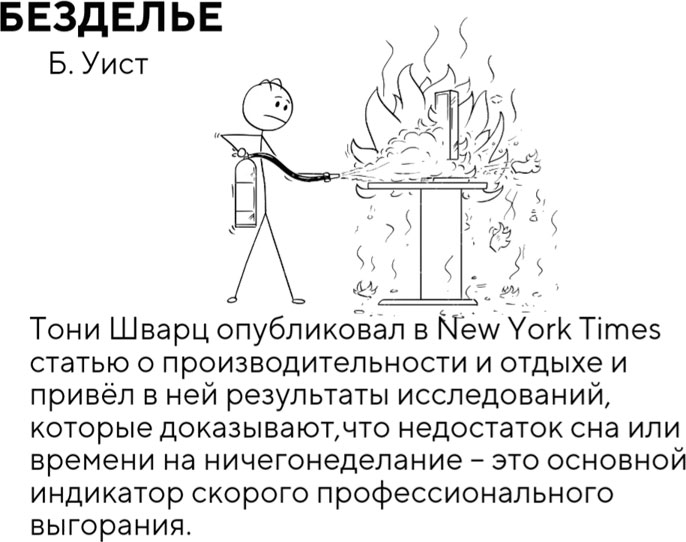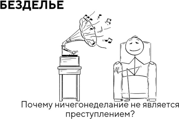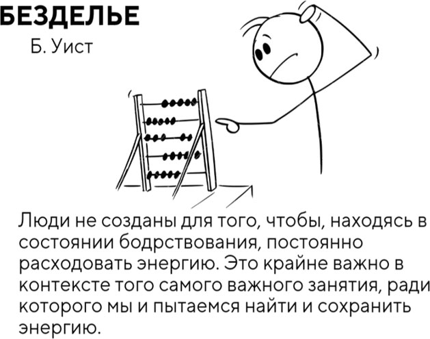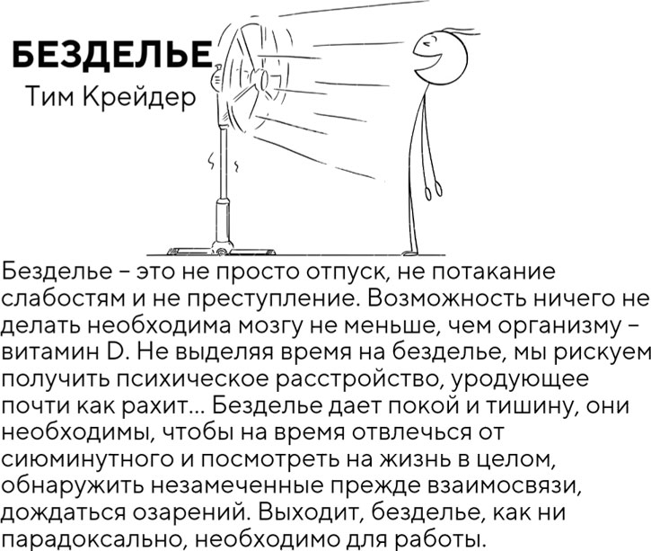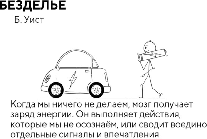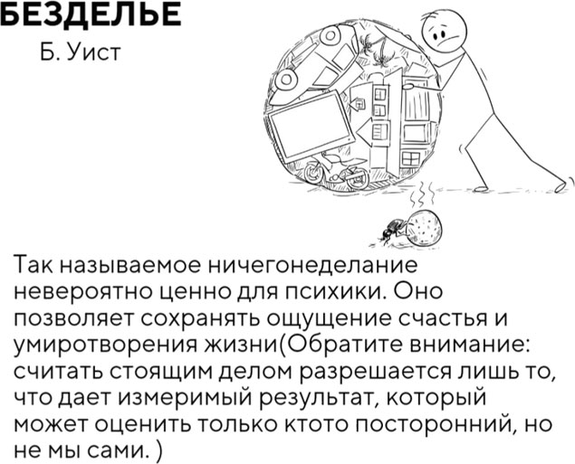 БЕЗДЕЛЬЕВ завершении главы про избегание целесообразно будет сделать акцент на безделье, а также на том, почему важно не путать два этих понятия. В своей книге «От важных инсайтов к реальным переменам» Б. Уист дала превосходное обоснование ответа на вопрос: почему нужно бездельничать? Так что если тебе, так же как и мне, тяжело даётся ничегонеделание, эти комиксы для тебя.