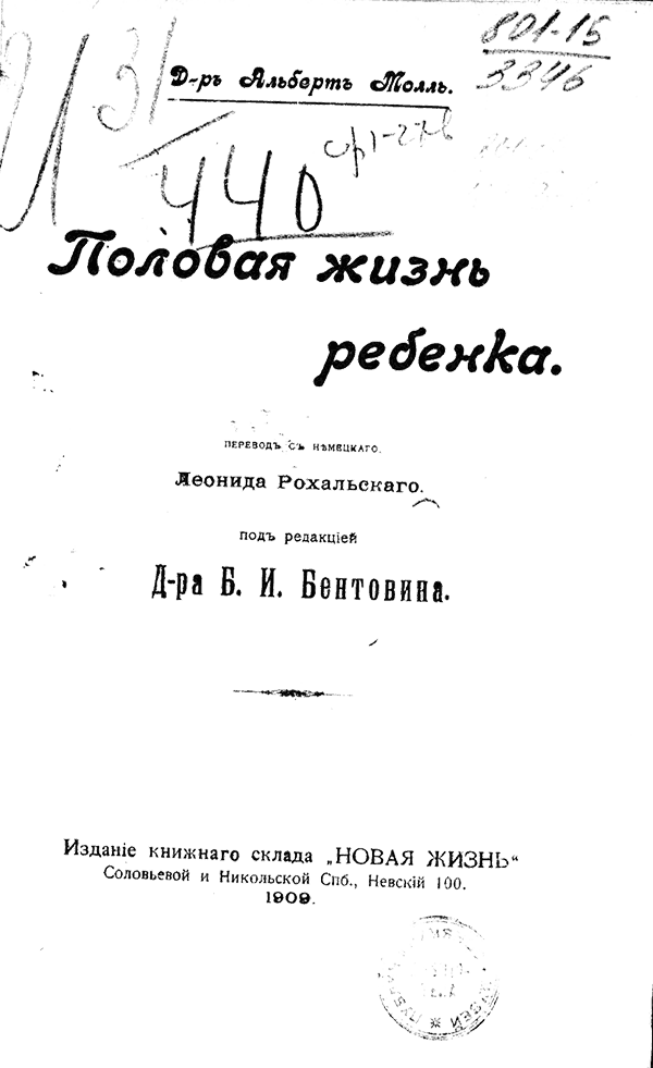 Титульная страница прижизненного издания книги Альберта Молля 1909 года издания