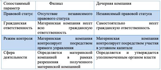 Дочерняя компания является независимой компанией со статусом автономного юридического лица, подконтрольной владельцам ее уставного капитала.