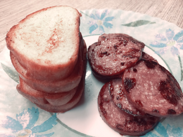 Выживаю как могу. Остатки из холодильника… дабы по вкуснее чтобы, а не давиться – пришлось создать минимальную зажарочку. Полезности, конечно, мало…