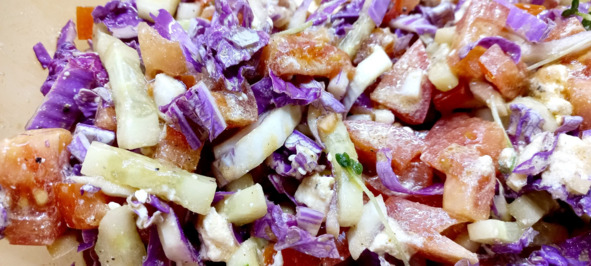 Благо последние помидоры и капусту удалось изрезать в салат.