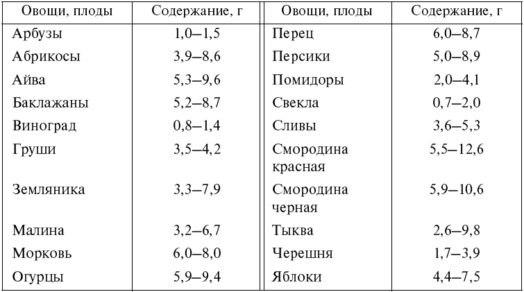 Больше всего пективнов содержится в яблоках, черной смородине и других плодах и овощах (табл. 3).