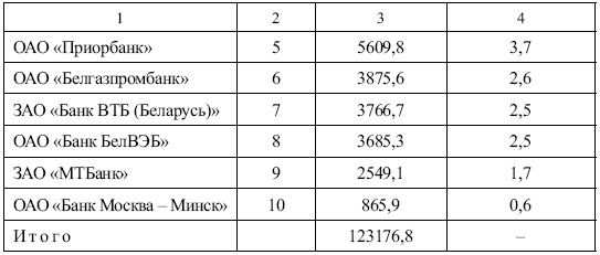 В табл. 1.2 представлено десять белорусских банков, лидирующих в банковской системе по объему привлеченных вкладов клиентов по итогам 2012 г.