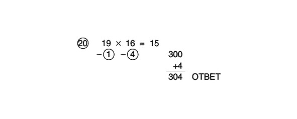 Kā ir ar skaitļu reizināšanu, kas ir mazāki par 20? Ja tie (vai vismaz viens no tiem) ir lielāks par 15, bet mazāks par 20, kā atsauces numuru varat izmantot 20. Atrisināsim piemēru: