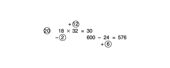 Varat pievienot 18 un 12 vai atņemt 2 no 32 un pēc tam rezultātu reizināt ar atsauces skaitli: