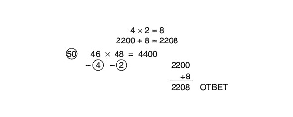 Iepriekšējā sadaļā mēs runājām par skaitļu pāru reizināšanas metodi līdz 30 x 30. Ko darīt, ja jums ir jāreizina vēl lielāka izmēra skaitļi? Šajā gadījumā kā atsauces skaitli varat izmantot 50. Reizināt ar to ir vienkārši, jo 50 ir puse no 100 vai 100 dalīts ar 2. Tātad, lai reizinātu ar 50, vispirms var reizināt skaitli ar 100 un pēc tam dalīt rezultātu. ar 2.
