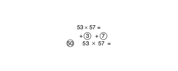 19 x 3 = (20 – 1) x 3 = 60 – 3 = 57