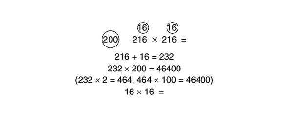 Kā, piemēram, atrodam produktu 216 x 216? Ja kā atsauci izmantojat 200, piemēru var viegli atrisināt, tostarp jūsu galvā: