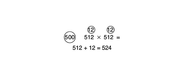 Lai 524 tūkstošus sadalītu uz pusēm, tos var sadalīt uz 500 tūkstošiem un 24 tūkstošiem. Pusi no abiem skaitļiem ir viegli aprēķināt galvā. Puse no 500 tūkstošiem ir vienāda ar 250 tūkstošiem. Puse no 24 tūkstošiem ir vienāda ar 12 tūkstošiem. 250 tūkstoši plus 12 tūkstoši dod 262 tūkstošus.