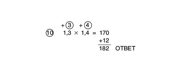 Saskaitīsim šķērsām un pēc tam reizinim rezultātu ar 10, iegūstot starpatbildi: