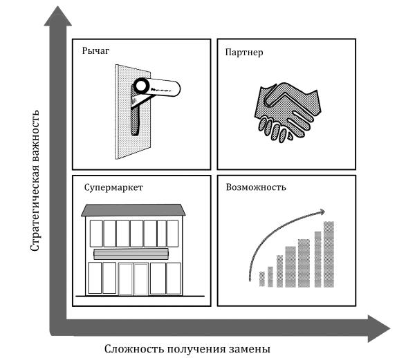 Опять же причина неудач – неверный прогноз. Разработав инновационное решение, бизнесмены увидели себя в категории «возможность», то есть по вектору «заменимость» насчитали себе 8–10 баллов и решили, что этого достаточно для успеха. Однако они не учли тот фактор, что – при всей их незаменимости – важности для партнеров они не представляют.
