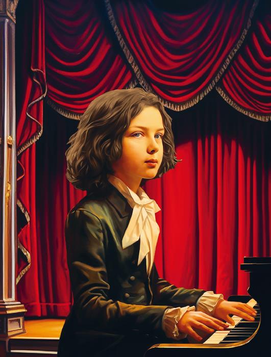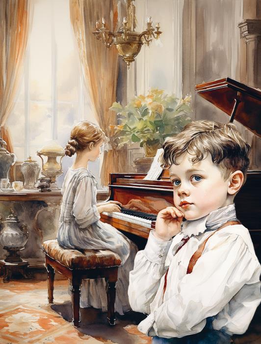 Заметив интерес сына к музыке, мама пригласила гувернантку учить Мишу нотной грамоте и игре на фортепиано. А крепостной музыкант из дядиного оркестра помогал мальчику осваивать скрипку.