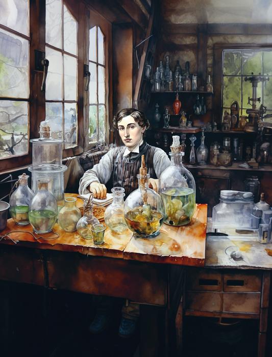 – Сашенька, что у тебя там бурлит и грохочет? – интересовалась мама, заглядывая к сыну в комнату, напоминавшую научную лабораторию. Колбочки, трубочки, горелки, баночки с непонятными растворами. Мальчик постоянно проводил опыты и сам делал акварельные краски для рисования.