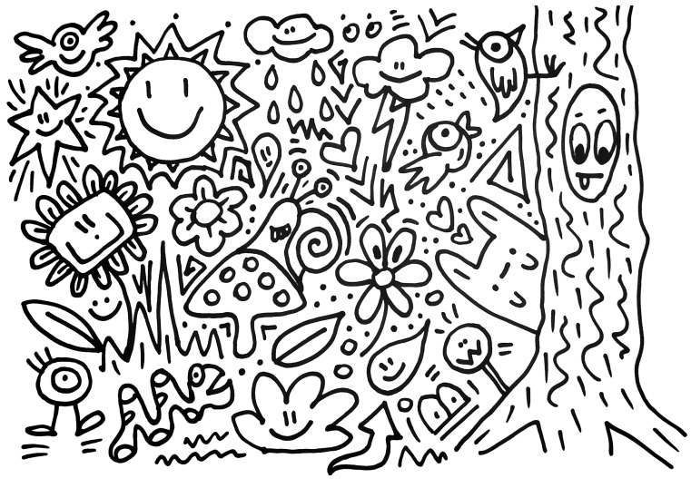 Сейчас дудлингом называют смешные простые рисунки и каракули, которые складываются в полотна и орнаменты. В этих орнаментах может быть ритм и логика, а может и не быть. Чаще всего эти объекты не соединяются между собой, и линии проводятся без отрывов. Один объект – одна линия. Очень часто у вещей, цветов, растений и любых других объектов рисуют глаза, нос, рот и руки с ногами. Пустоты между этими персонажами заполняют точками, чёрточками, кружочками и треугольниками. В итоге получается композишн «Ёжик по травке бежит и хохочет…»