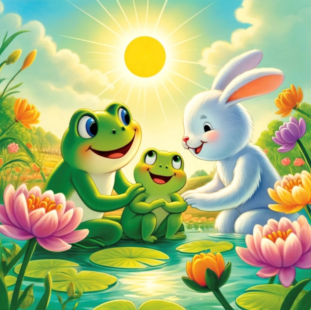 Жили-были в большом пруду с красивыми лилиями веселые лягушки. Они всегда играли вместе и были лучшими друзьями. Но однажды маленькая лягушка по имени Лиза почувствовала страх, когда к пруду подошел незнакомый белый кролик.