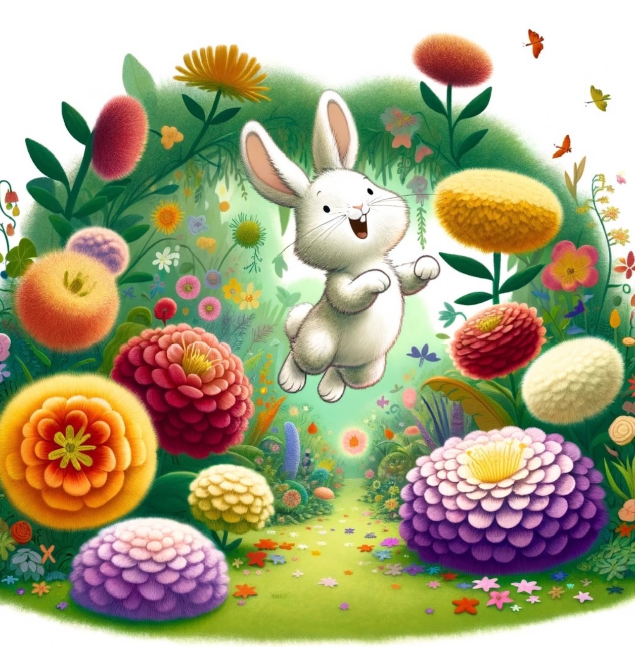 Как только Прыгун вошел в сад, он заметил необычные цветы-подушки. Они были мягкими и пушистыми, как настоящие подушки! Прыгун не мог удержаться и начал прыгать по ним.