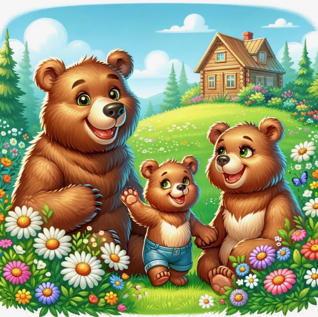 В одной прекрасной стране, в сосновой роще жили-были семья медведей: Папа Медведь, Мама Медведица и Маленький Медвежонок.