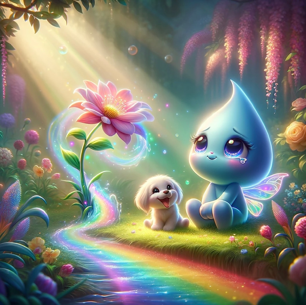 В далекой стране, где радуга касалась вершин гор и окрашивала все вокруг в яркие краски, жила маленькая капелька по имени Лира. Лира была необыкновенной капелькой, ведь она могла плакать радужными слезами.