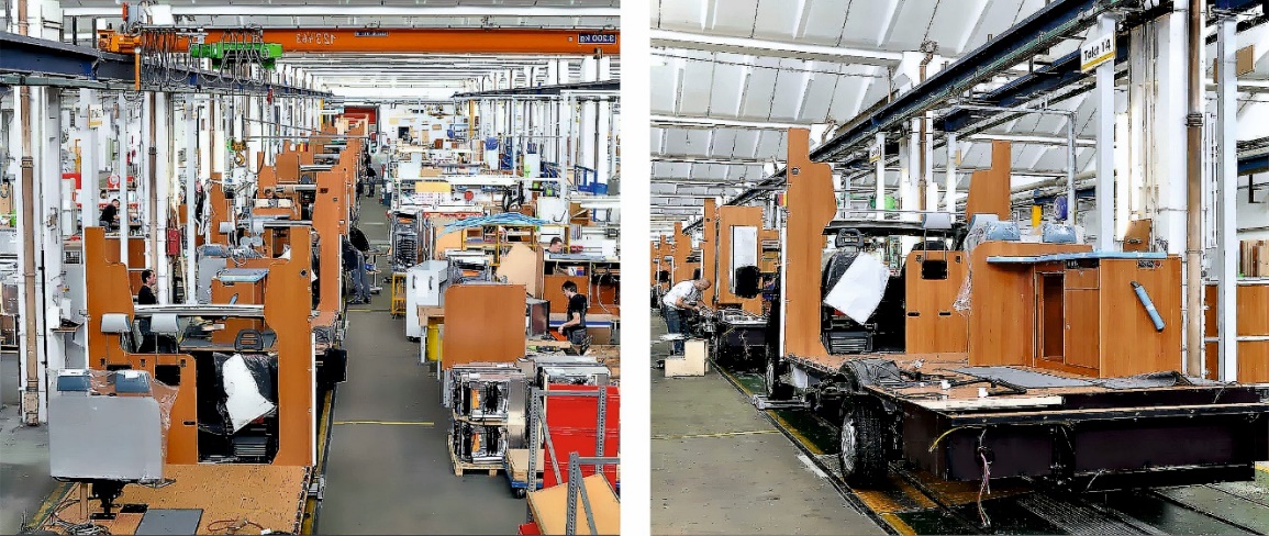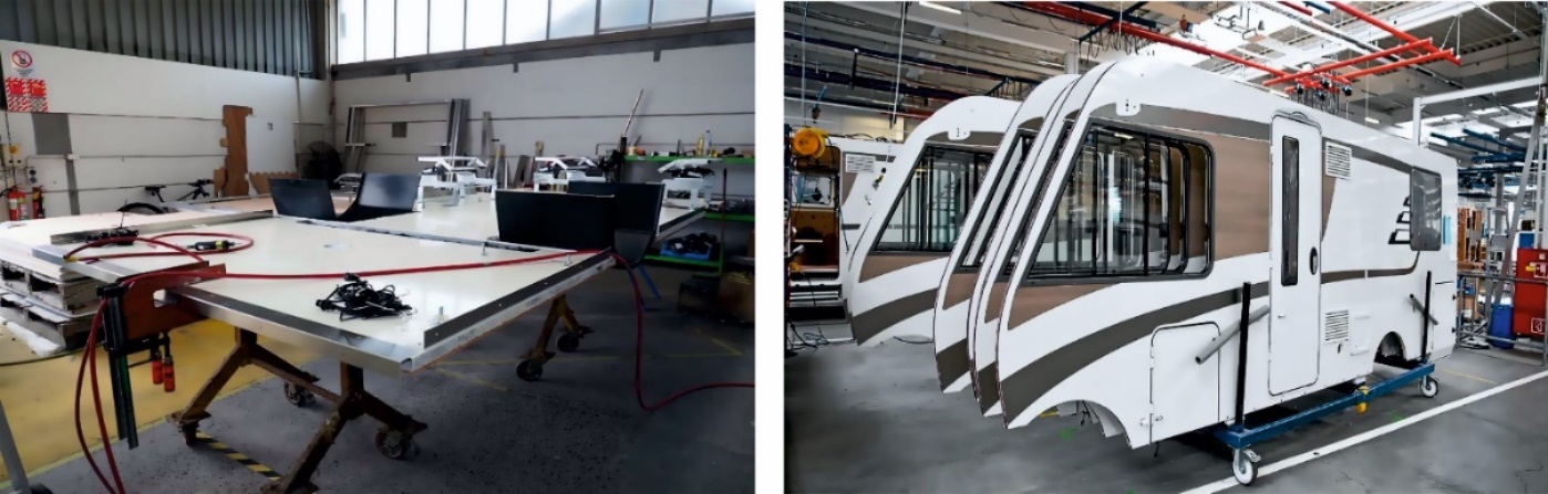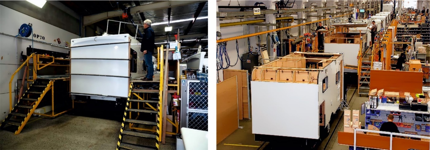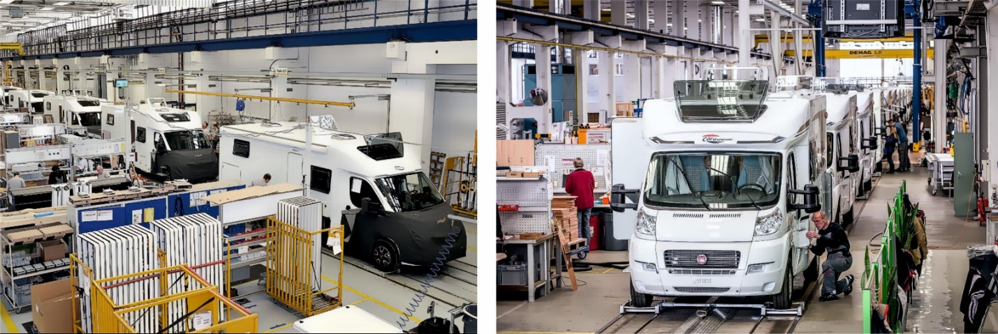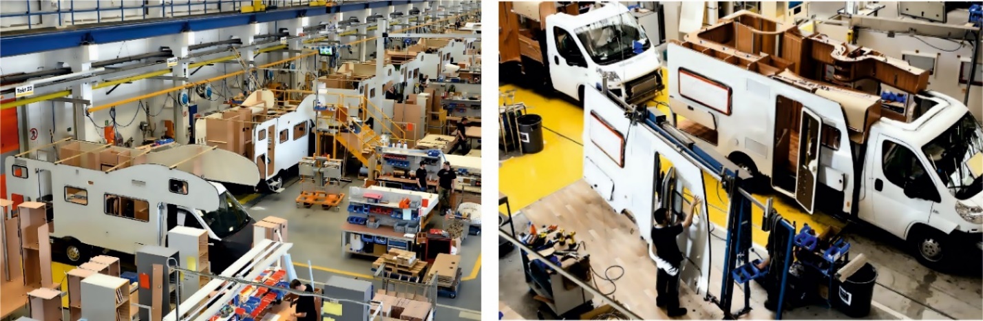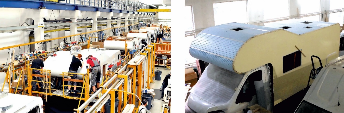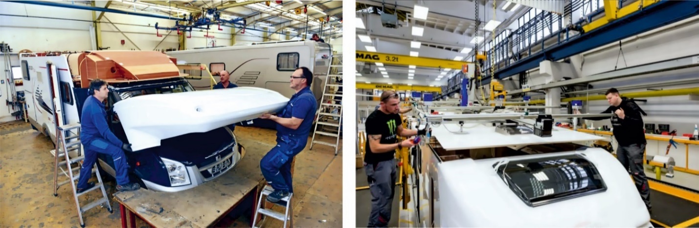 Рисунок 3.15. Слева монтаж стен на заводе бренда «Hymer Group» – «Carado», справа установка стен производства «Hobby».