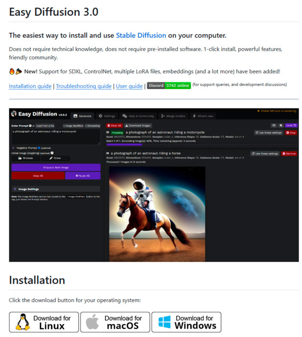 Once again, I would like to draw your attention to the fact that Easy Diffusion is an easy-to-install assembly of software packages (or, in other words, a distribution kit) of the Stable Diffusion Artificial Intelligence system for various operating systems. Here and further, I will not talk about Stable Diffusion, but rather Easy Diffusion due to the fact that it is with this distribution and program that we will work.