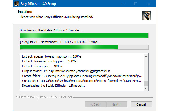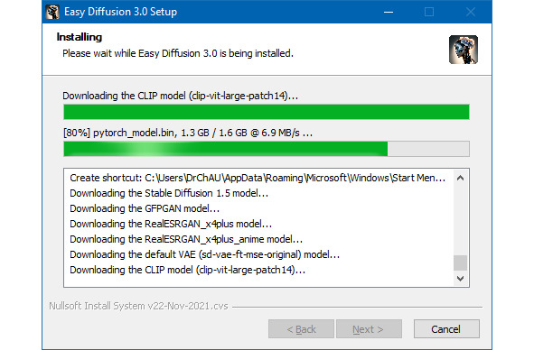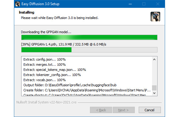 The program will install other auxiliary models (for example, GFPGAN model, Real-ESRGAN model, etc.), which are used by Easy Diffusion to improve the images you create.