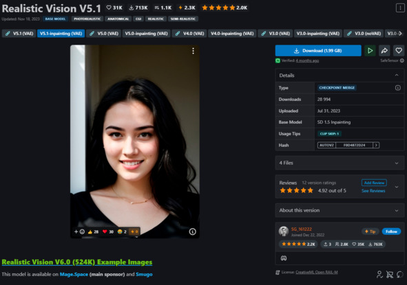 (https://civitai.com/models/4201/realistic-vision-v51);