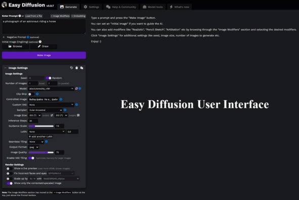 You have become the proud owner of your own Easy Diffusion Artificial Intelligence system, installed on your personal computer and supplemented with new models.