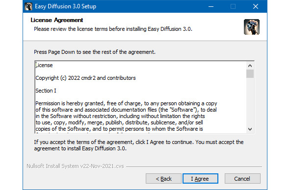 After downloading the file named Easy-Diffusion-Windows, launch the installation and click the «Next» button: