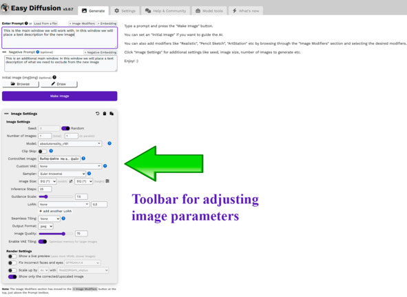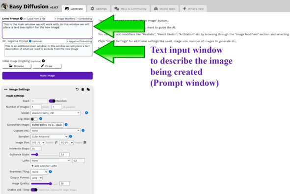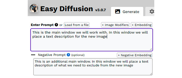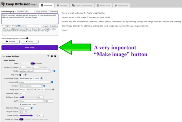 Once again, I would like to draw your attention to the fact that the main purpose of Easy Diffusion is to create a new unique image from a text description or from a combination of text and image based on the most popular neural network models today (which we downloaded and installed earlier).