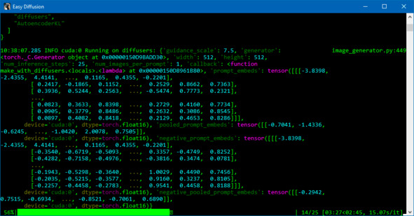 If you open the application backend window, you will see how the Easy Diffusion system works:
