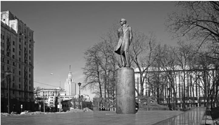 В 1941 году по случаю столетия смерти поэта площадь Красных ворот переименовали в Лермонтовскую. Предполагалась и установка памятника, но война помешала. А в 1992 году от нее отрезали довольно значительную часть и назвали ее вновь площадью Красных ворот. Так что теперь здесь целых две площади. В 1965 году на площади установили наконец памятник Лермонтову работы скульптора И. Бродского (какое удивительное совпадение – такую же фамилию носил и один из биографов поэта, книга которого «М.Ю. Лермонтов. Биография» вышла в 1945 году в Москве).