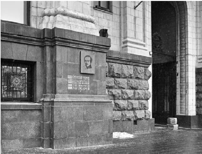 Памятная доска на высотном здании, обозначающая место в Москве, где родился великий поэт