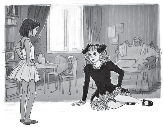 Закончив показывать новой игрушке свой киберзверинец и коллекцию косметики, которая в пять лет вообще-то и не нужна, Лагуна подвела ее к трюмо. Заглянув в него, Сати потеряла дар речи: в большом овальном зеркале отражалась самая настоящая кукла. Ее кожа сияла изнутри и блестела от ярких страз, волосы были уложены в немыслимое «птичье гнездо», а фиолетовое платье с завышенной талией и изобилием рюшечек можно было представить только на кукле, а не на живой девушке. Сати растерянно хлопала пушистыми ресницами, раза в два длиннее ее собственных, и только выражение изумления на лице говорило о том, что она все-таки не кукла, а человек.