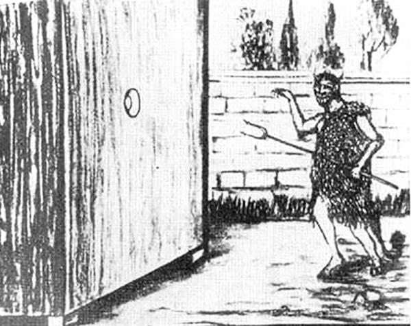 3. Прародитель кинозала. Зрители, сидящие в темном помещении камеры-обскуры, видят на «экране» изображение чертика (начало XVII века)